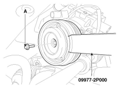6. Remove the center bolt (A) while holding the disc & hub assembly with SST(09977-2P000).