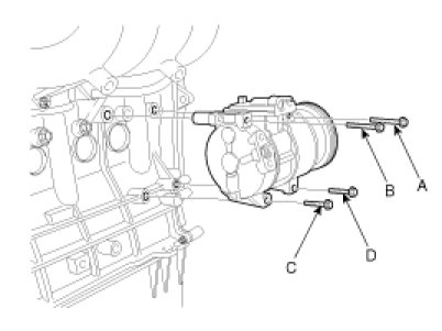 1. Make sure of the length of compressor mounting bolts, and then tighten it A->B->C->D order.