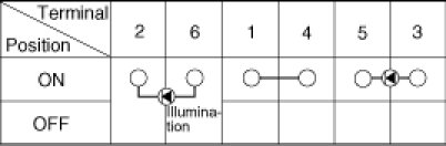 4. Check for continuity between the terminals in each switch position according to the table.