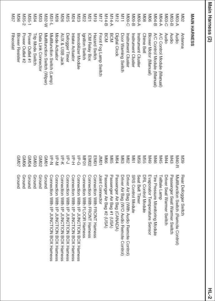 Main Harness Index: