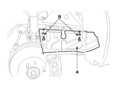 3. Remove the 2 bolts(B) and RH side cover(A).