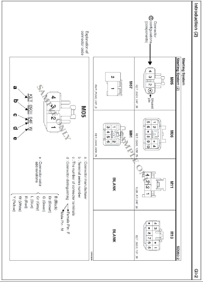 - It shows the front of the connector on the harness side when not to the harness connector. The terminal number on each connector can be obtained by following the pattern used in (5) connector view and numbering order. Unused terminals are marked with an asterisk (*).