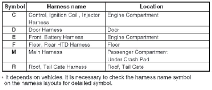 Electrical wiring connectors are classified according to the wiring parts in the Harness Layouts.