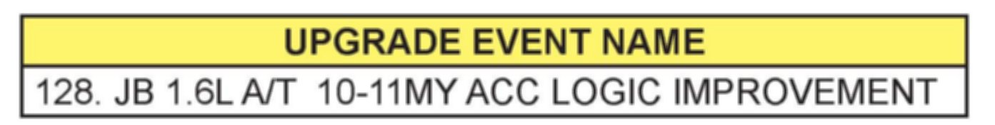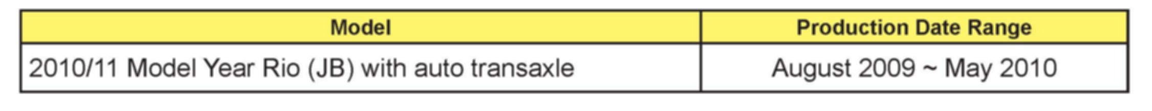 This bulletin provides the procedure to upgrade the Powertrain Control Module (PCM) of some 2010 and 2011 Model Year Rio (JB) vehicles with automatic transaxle produced between August 2009 through May 2010. This reflash has enhanced shift control logic to improve performance,increase fuel efficiency and improve cruise control.
