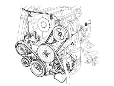 4. Remove the power steering pump belt(B).