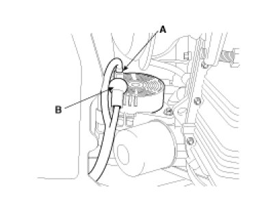 8. Disconnect the generator connector (A), and remove the cable (B) from generator "B" terminal.