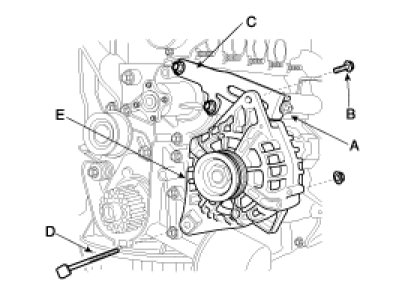 10. Remove the generator brace(C).