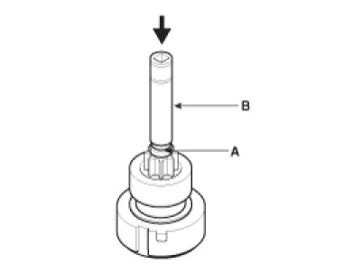 10. Remove the stopper (A), stop ring (B), overrunning clutch (C) and armature (D).