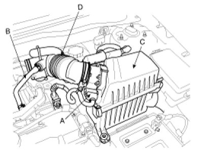 (2) Disconnect the breather hose(B) from intake air hose(D).