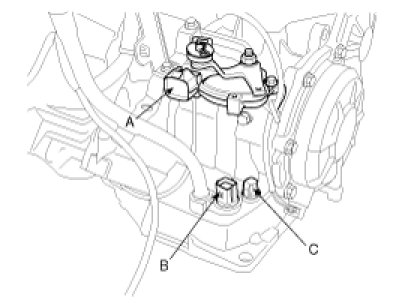 (2) Disconnect the solenoid valve connector(B).