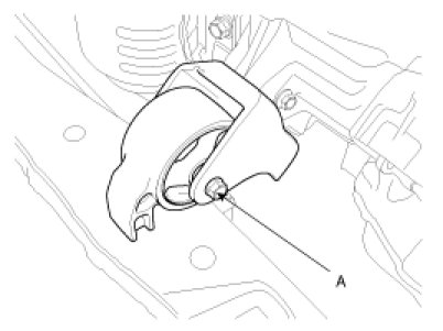 11. Remove the front roll stopper mounting bolt(A).