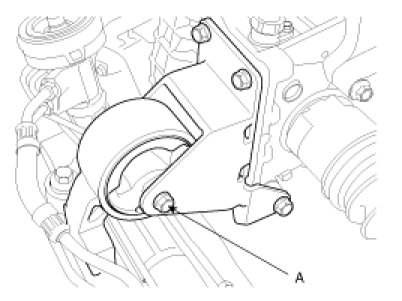 12. Remove the rear roll stopper mounting bolt(A).