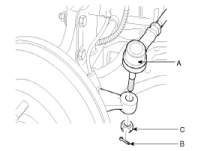 17. Separate the tie rod end(A) from the pin(B) and nut(C).