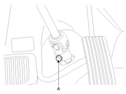 22. Remove the steering U-joint mounting bolt(A).