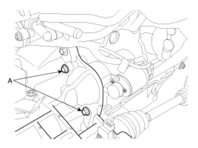 27. Remove the engine to automatic transaxle mounting bolts(A).