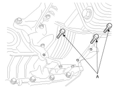 25. Remove the start motor mounting bolt(A).