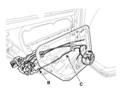 3. After loosening the door module mounting bolts, remove the door module (A).