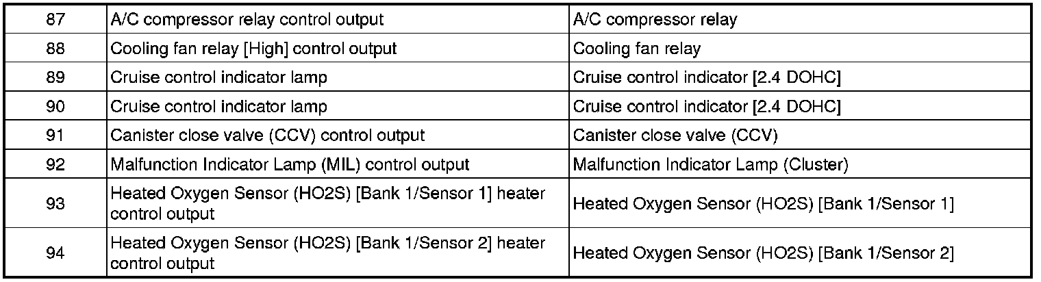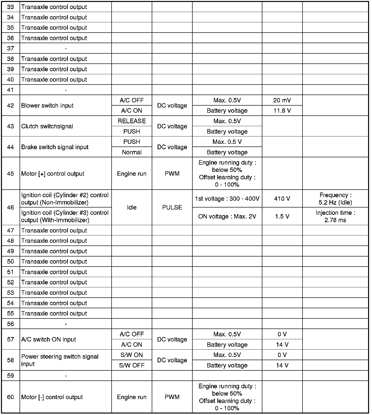 Pinout Values and Diagnostic Parameters