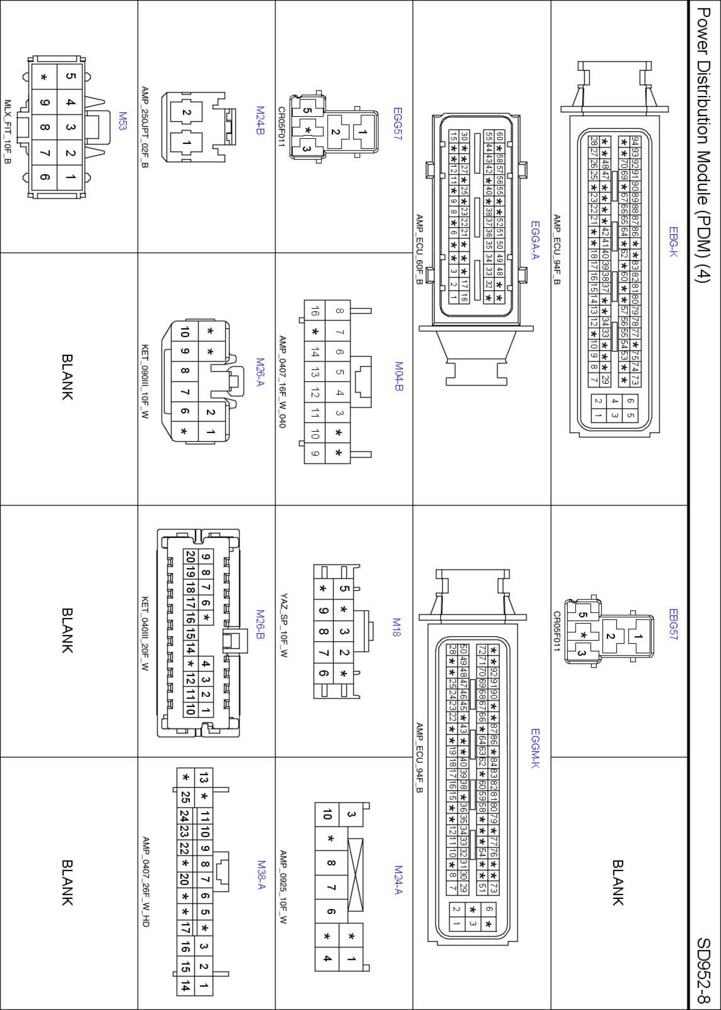 Power Distribution Module (PDM) (4) Connector Pin Outs: