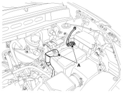 1. Disconnect the battery terminal (A).