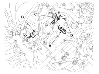(7) Remove the ignition coil harness mounting bolts (D).