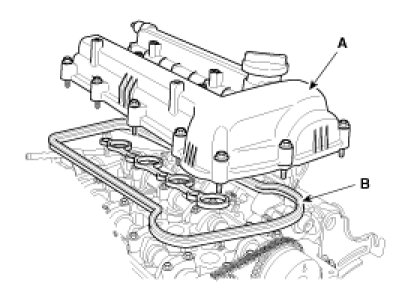 11. Install the cylinder head cover(A) with a new gasket(B).