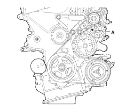 2. Loosen the alternator tension adjusting bolt(A) to loosen tension.