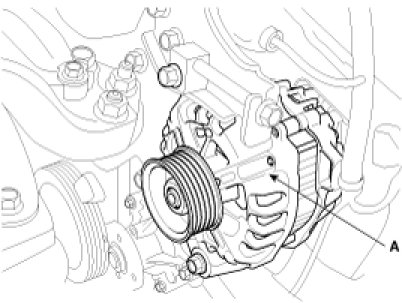 22. Install the alternator(A) and pretighten the mounting bolts.