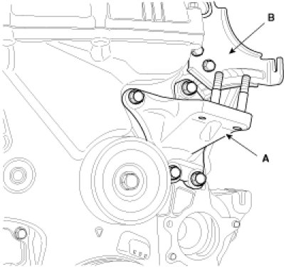 3. Install the hydraulic tensioner(A) and remove the pin(B).