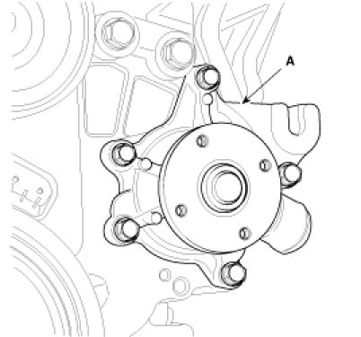 (3) Apply the liquid gasket, THREE BOND 1282B or THREE BOND 1216E on the water pump contact parts of the timing chain cover and THREE BOND 1217H or LOCTITE 5900H on the rest parts. Reassemble the cover(A) within 5 minutes.