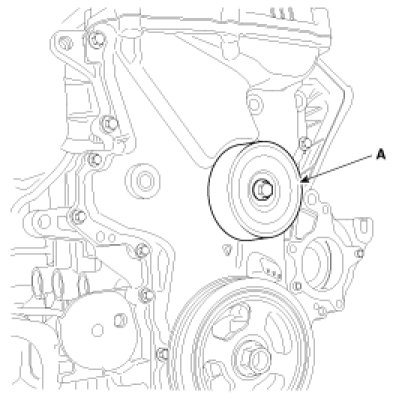 18. Remove the crankshaft bolt(B) and crankshaft pulley(A).
