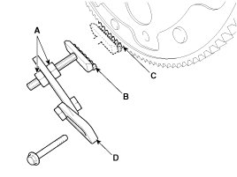 - Install the SST (09231-2B100) to hold the ring gear after removing the starter.