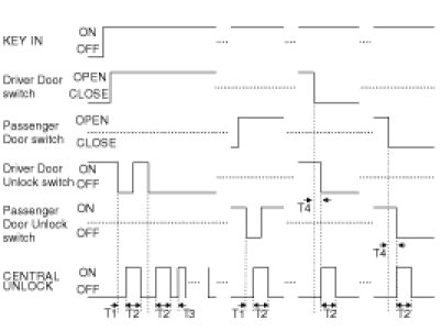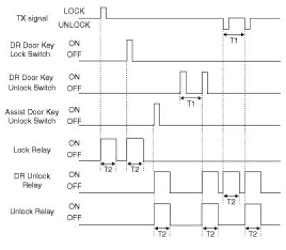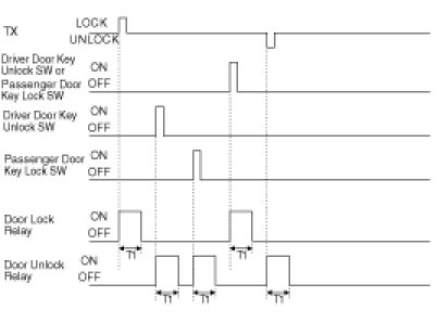 (3) Turn Driver Unlock Relay output ON during T2 when receiving TUNLOCK signal. However, turn Driver Unlock Relay, Unlock Relay (Central Unlock) output during T2 if TUNLOCK is received within T1.
