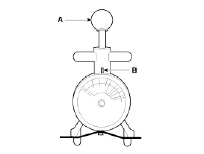 2. After releasing the handle (A), read a value on the dial pointed by the indicator (B).