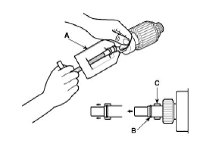 10. Remove the stop ring (A), stopper (B), overrunning clutch (C).