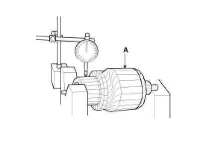 5. Check the commutator diameter. If the diameter is below the service limit, replace the armature.