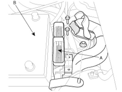 10. Install the transaxle upper mounting bolts (A-2ea) the starter motor mounting bolts (B-2ea).