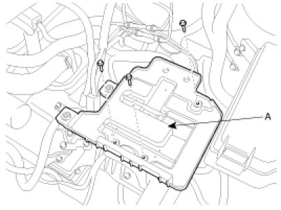 2. Disconnect the PCM connectors, remove the PCM (A), and remove the battery (B).