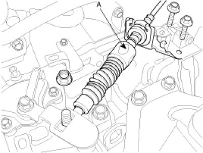 13. Connect the transaxle oil cooler hoses (A) to the tubes by fastening the clamps.