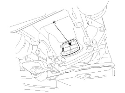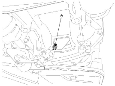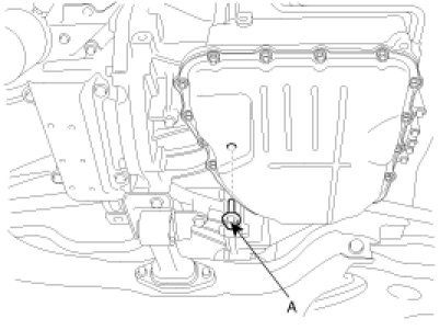 14. Drain the transaxle fluid by removing the drain plug (A).
