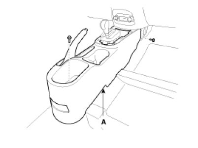 6. After loosening the console mounting screws and bolts, remove the floor console assembly (A).