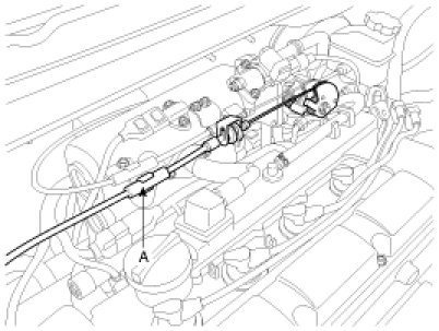2. Remove the auto-cruise control cable(A).
