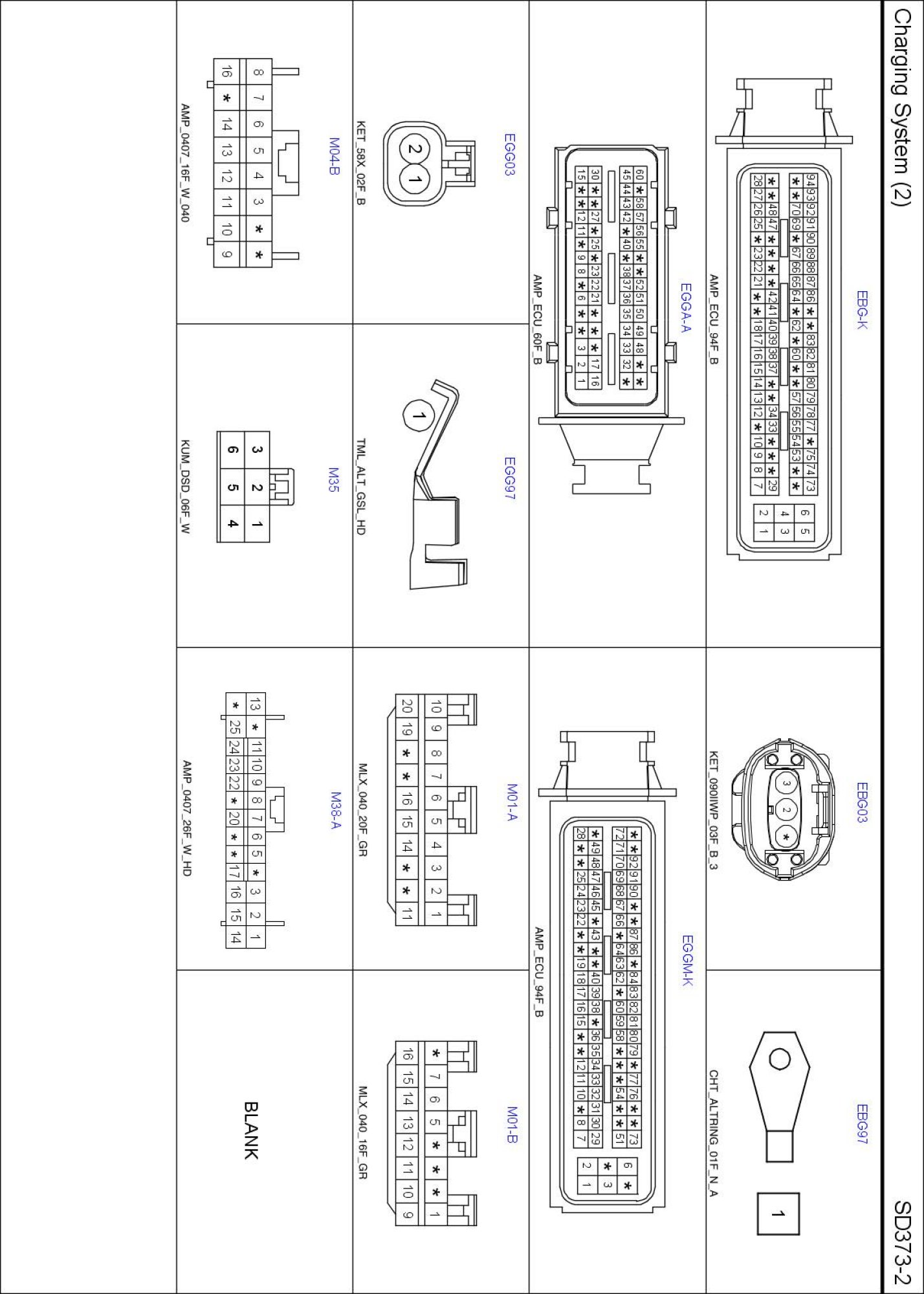 Charging System (2) Connector Pin Outs: