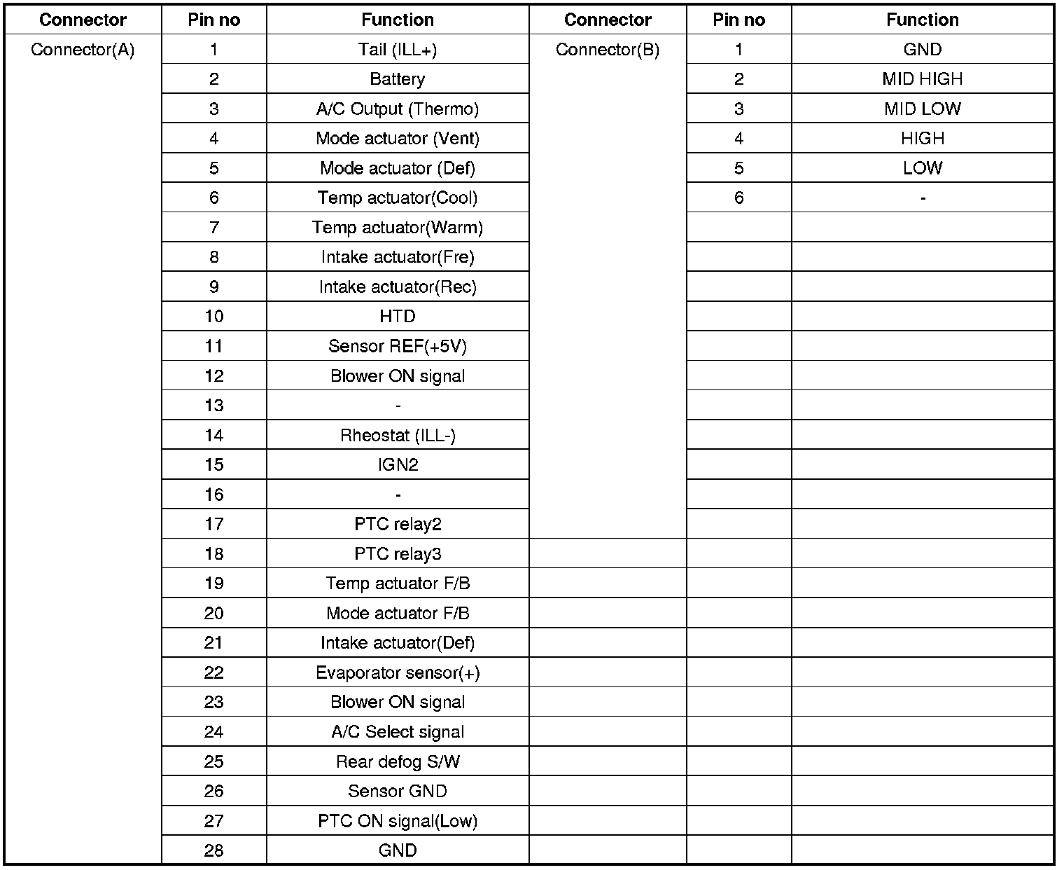 Connector Pin Function
