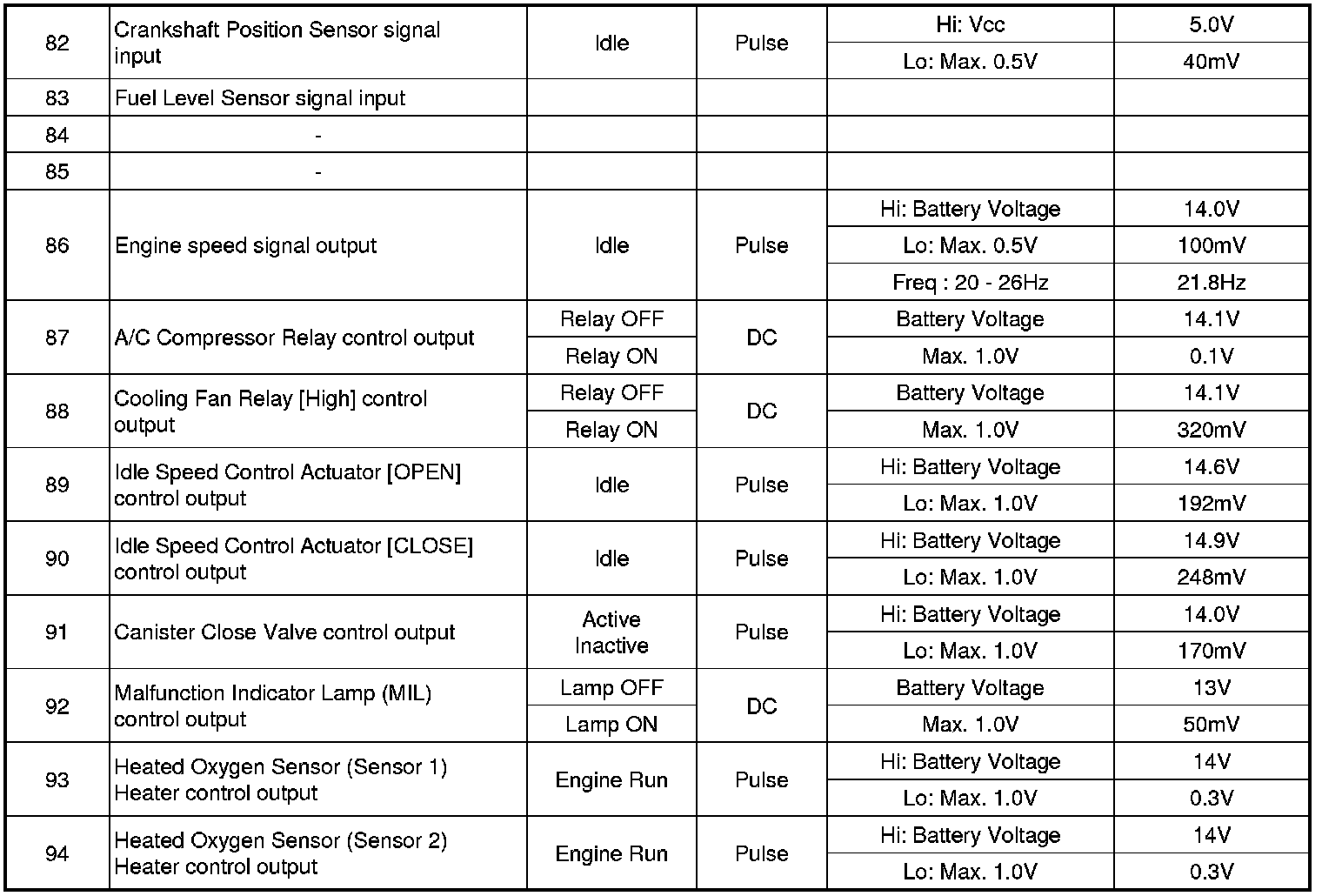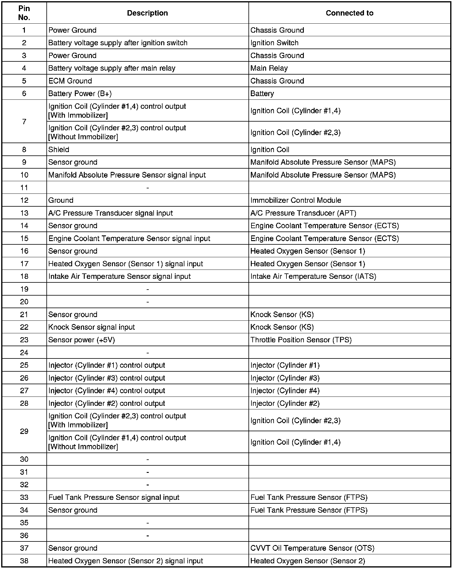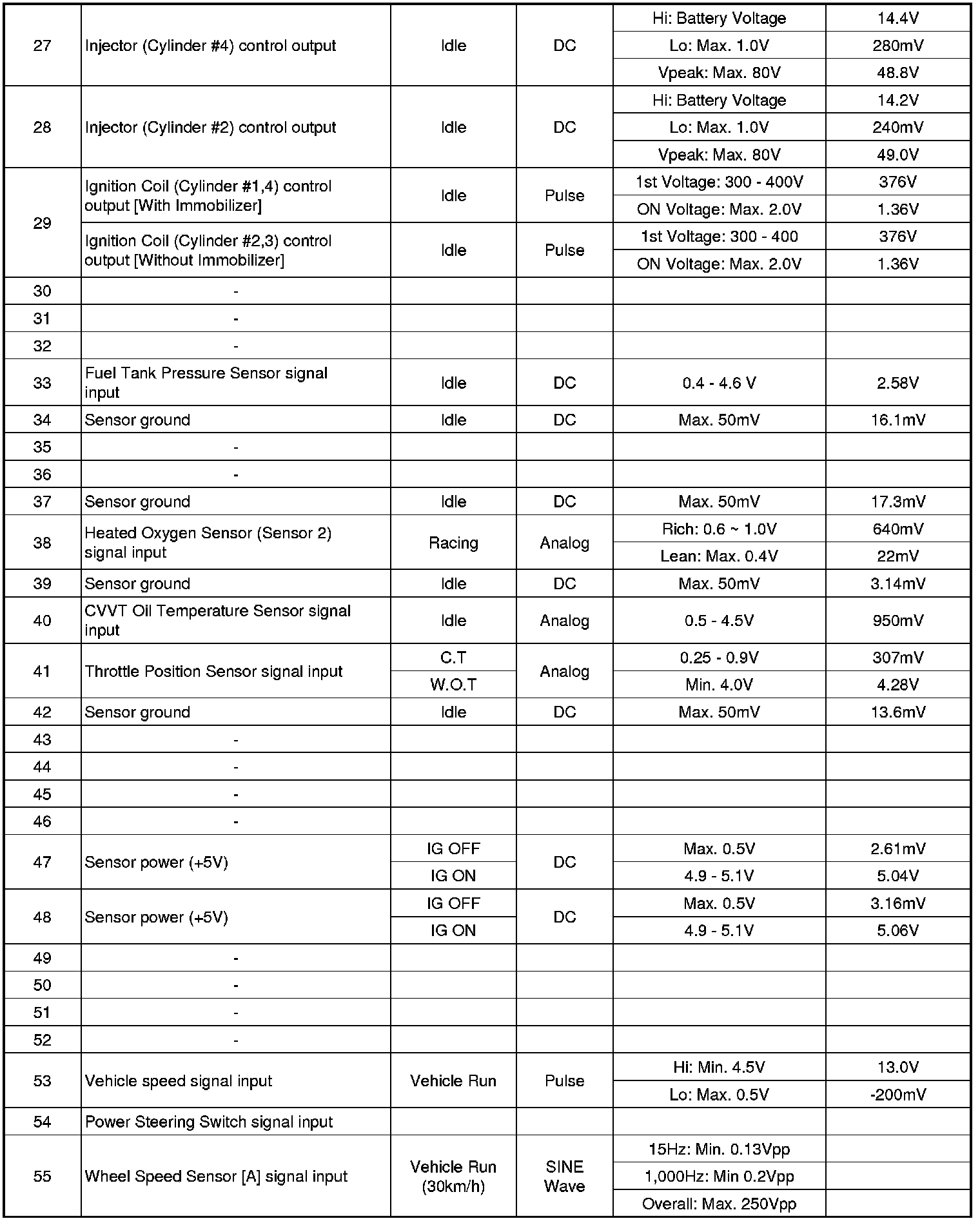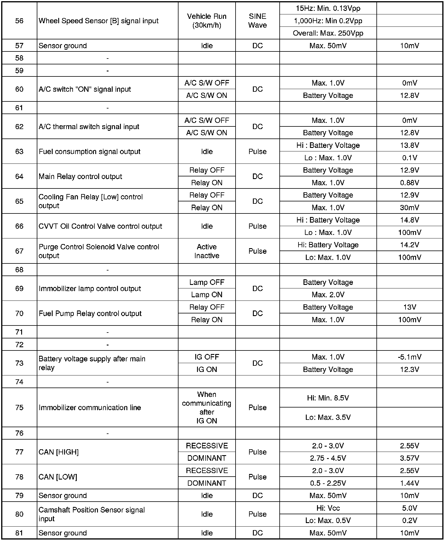 ECM Terminal And Input/Output signal