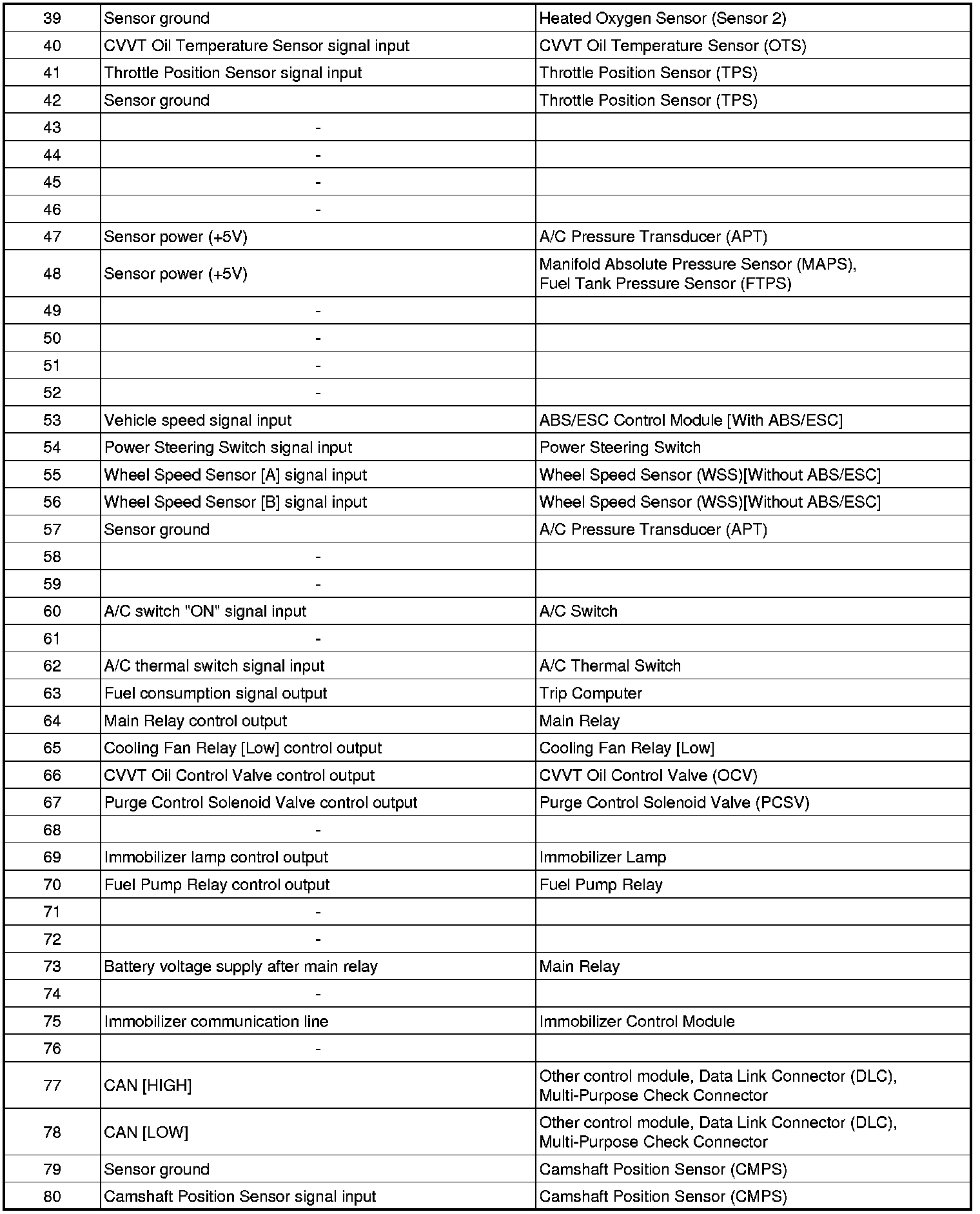 ECM Terminal Input/Output Signal