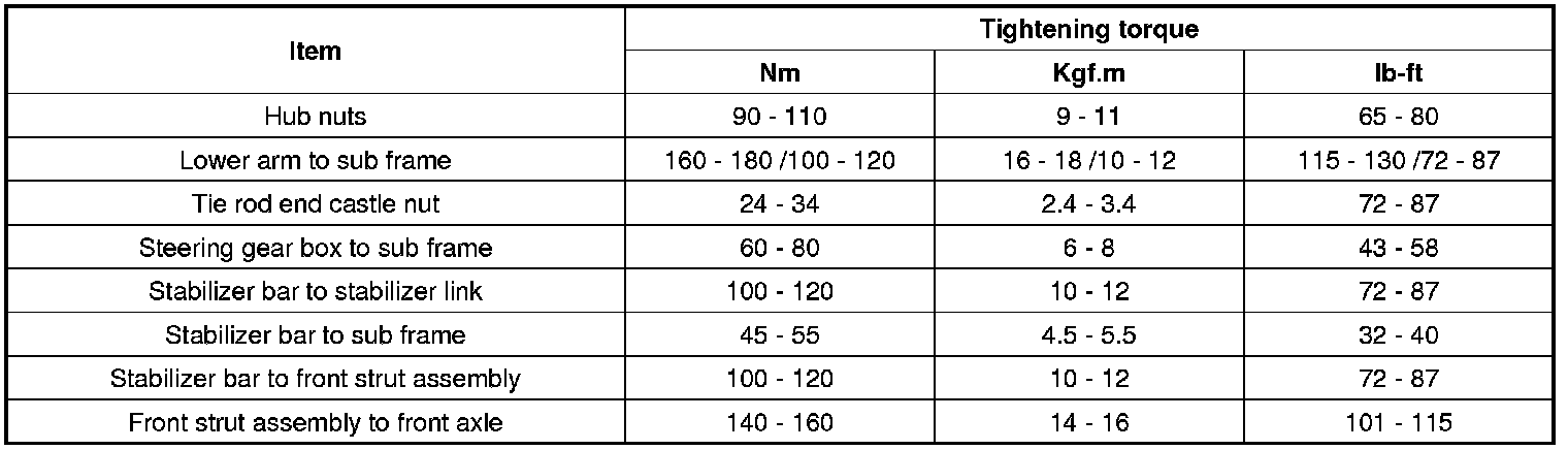 Tightening Torques