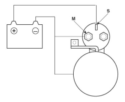 2. Connect a 12V battery between the S-terminal and the M-terminal.