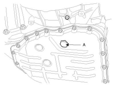 12. Drain the transaxle fluid by removing the oil drain plug (A).