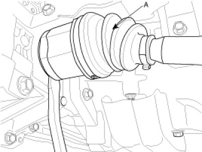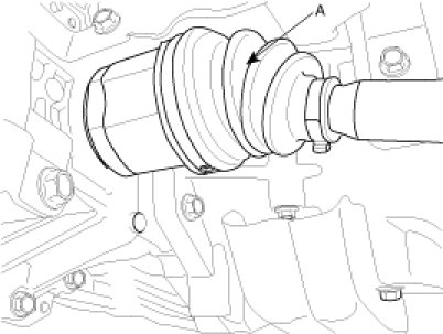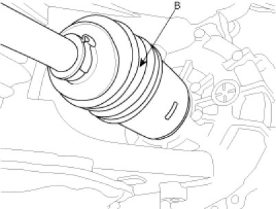 6. Disconnect the drive shafts (A,B) from the transaxle (refer to removal in DS group)